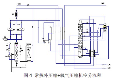 方案一:常規(guī)外壓縮+氧氣壓縮機空分流程