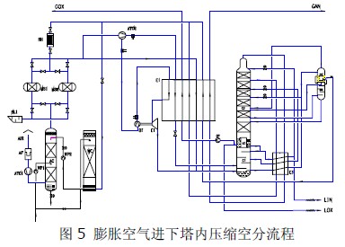方案二:膨脹空氣進下塔內(nèi)壓縮空分流程