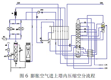 方案三:膨脹空氣進上塔內(nèi)壓縮空分流程
