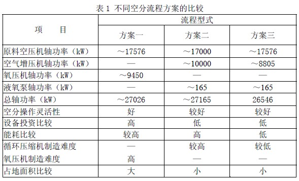 3.1 空分流程方案的提出
