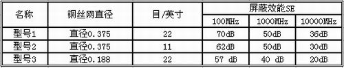 表1 單層銅絲網(wǎng)不同頻率下的屏蔽效能