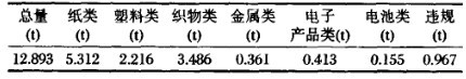表4 試點(diǎn)期間回收垃圾的成分和數(shù)量