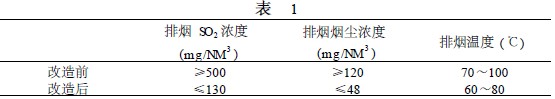 該供熱廠有5臺型號為SHL35 - 1. 57AⅡ型燃煤蒸汽鍋爐,每臺爐配有文丘里一麻石水膜除塵裝置,燃用低硫優(yōu)質(zhì)混煤(煤中含硫一般低于0. 5) ,單臺爐煙氣流量≤5萬NM3 /h,鍋爐出口煙氣SO2 濃度為600~2500mg/NM3 ,鍋爐出口煙塵濃度400~2000mg/NM3 ,除塵裝置進口煙溫120~160℃. 該供熱廠于兩年前進行了AOP脫硫工藝改造,改造前后數(shù)據(jù)對比如下.