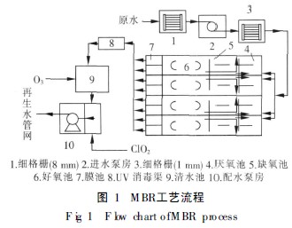 隨著世界水資源的不斷消耗, 水問(wèn)題已經(jīng)成為全球性問(wèn)題, 為了實(shí)現(xiàn)水資源的可持續(xù)利用, 污水處理后回用已經(jīng)是一個(gè)不可回避的事實(shí)。膜生物反應(yīng)器(MBR ) 是一種由膜分離單元與生物處理單元相結(jié)合的新型水處理技術(shù), 因其出水水質(zhì)能達(dá)到生活雜用水水質(zhì)標(biāo)準(zhǔn), 可滿足一般的中水回用要求, 且該工藝占地面積小、運(yùn)行穩(wěn)定、管理方便、污泥產(chǎn)量少, 使其在中水回用領(lǐng)域的應(yīng)用日益廣泛[ 1、2] 。