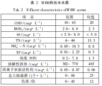 2009年MBR 處理系統(tǒng)的出水水質(zhì)見(jiàn)表2。