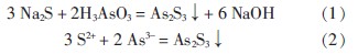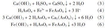 該廠制酸廢水中硫酸的質(zhì)量濃度達(dá)20mg/L 以上, 其中的砷主要以亞砷酸存在, 酸度很高時(shí), 砷還可以離子形式存在。工藝的第一階段為硫化鈉沉砷, 反應(yīng)如下:
