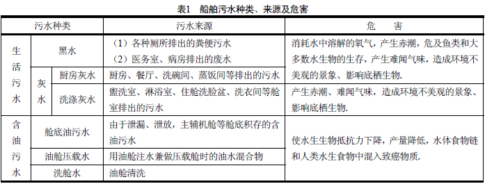 1 船舶污水來源、種類及危害