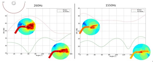 (5)旋轉機械噪聲模擬軟件ACTRAN TM是分析渦輪機械聲輻射,以及優(yōu)化與渦輪機械輻射噪聲相關聲學處理部件的工具,能夠準確捕捉非均質流動的對流和折射效應,可以用入射管道模態(tài)來定義聲源,或者根據一組平面的壓力脈動提取聲源,壓力脈動來自CFD的瞬態(tài)計算結果。