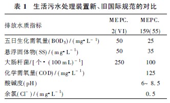 對比表1 關(guān)于MEPC. 2(Ⅵ) 規(guī)范和2010 年 1 月1 日正式實施的MEPC. 159( 55) 新規(guī)范。由表1, 國際海事組織對生活污水處理裝置規(guī)范的對比可以看出, 規(guī)范中原來規(guī)定的排放指標均有大幅度的提高, 而且增加了相應(yīng)的控制項目。