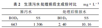 由表2 可見, 進入裝置的原污水的水質(zhì)情況非常差, 經(jīng)過裝置的處理后, 排放水的水質(zhì)完全滿足規(guī)范的要求。