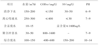 根據(jù)現(xiàn)已建成的實際生產(chǎn)裝置,提出了工業(yè)園總體的水質(zhì)及水量(見下表)。
