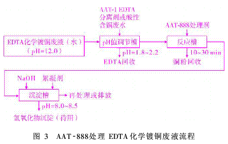 AAT-888處理EDTA化學鍍銅廢液的步驟如下,流程見圖3: