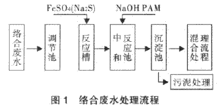 常用破絡(luò)的化學藥劑有Fe鹽、Na2S等,因為S2-屬于排放標準中嚴格控制的污染物,因此Na2S只能作為輔助的破絡(luò)劑,嚴格控制其投加量。常用絡(luò)合廢水處理工藝見圖1。