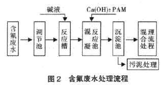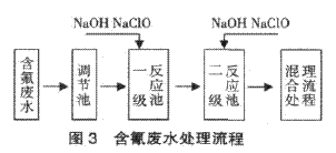 含氰廢液一般都回收處理,只有清洗廢水中含有少量氰(CN-),常用堿性氯化法破氰(絡(luò)合氰)。常用含氰廢水處理工藝見圖3。