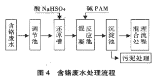 含鉻廢水中,鉻主要以Cr6+的形式存在,在酸性的條件下,投加還原劑將Cr6+還原成Cr3+,然后調(diào)節(jié)pH至堿性,生成氫氧化鉻沉淀去除,常用的還原劑有亞硫酸鈉、亞硫酸氫鈉、硫酸亞鐵等。