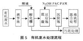 在酸性條件下,廢水中的感光膜、清洗劑會析出,形成濃膠狀聚合物,經(jīng)固液分離去除,再把pH調(diào)至弱堿性,加入混凝劑,經(jīng)沉淀進一步降低廢水的COD值。