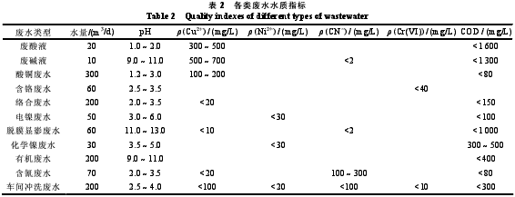 按污染物的性質(zhì)不同,適度、合理地將生產(chǎn)廢水分流為11類(lèi)廢水,各類(lèi)水的水質(zhì)指標(biāo)如表2所示。
