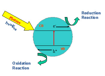 納米半導(dǎo)體粒子的粒徑通常小于空間電荷層的厚度。在此情況下,空間電荷層的任何影響都可忽略,光生載流子可通過簡單的擴(kuò)散從粒子內(nèi)部遷移到粒子表面而與電子供體或受體發(fā)生還原或氧化反應(yīng)。粒徑越小則電子與空穴復(fù)合幾率越小,電荷分離效果越好,從而導(dǎo)致催化活性的提高。在光催化反應(yīng)中,反應(yīng)物吸附在催化劑的表面是光催化反應(yīng)的一個前置步驟,催化反應(yīng)的速率與該物質(zhì)在催化劑上的吸附量有關(guān)。納米半導(dǎo)體粒子強(qiáng)的吸附效應(yīng)甚至允許光生載流子優(yōu)先與吸附的物質(zhì)進(jìn)行反應(yīng)而不管溶液中其他物質(zhì)的氧化還原電位順序。在催化反應(yīng)過程中,納米材料的表面特性和缺陷數(shù)量具有同樣重要的作用。