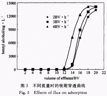 (2)吸附流量對樹脂吸附的影響 室溫下,不同流量時的吸附穿透曲線如圖3所示。
