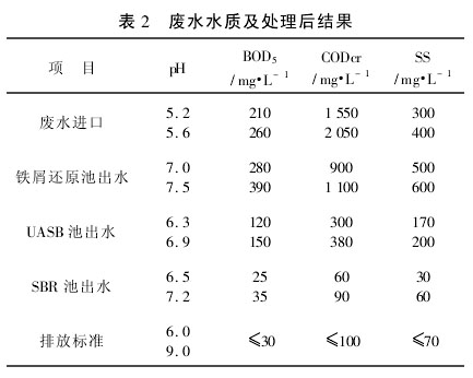 該系統(tǒng)后續(xù)用UASB+SBR反應(yīng)器生化處理,效果穩(wěn)定,未出現(xiàn)過系統(tǒng)堵塞現(xiàn)象,UASB反應(yīng)器和SBR反應(yīng)器內(nèi)顆粒污泥形成良好,未出現(xiàn)污泥膨脹和其它不良運行工況。系統(tǒng)半年來的運行結(jié)果統(tǒng)計表見表2。
