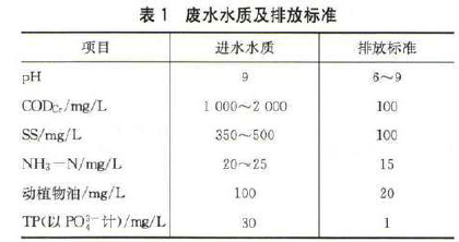 該公司廢水的設(shè)計處理量為450m3/d,廢水處理后,排入大連近海海域,執(zhí)行《遼寧省沿海地區(qū)污水直接排入海域標準》中的一級標準。進水水質(zhì)及排放標準見表1。