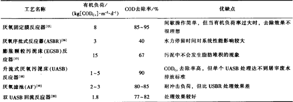 厭氧生物處理法主要用于處理高濃度有機(jī)廢水,在屠宰廢水的處理中使用很多種改進(jìn)了的厭氧法,針對(duì)屠宰廢水的各種處理工藝的特點(diǎn)、處理對(duì)象特點(diǎn),各種厭氧法的處理效果和優(yōu)缺點(diǎn)如下表。