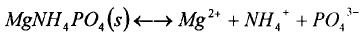 該法的獨(dú)特優(yōu)勢是生成的沉淀物MgNH4PO4,是一種農(nóng)作物所需的復(fù)合肥料,因而利用該法可達(dá)到廢物回用的目的。除去氨氮的反應(yīng)機(jī)理如下: