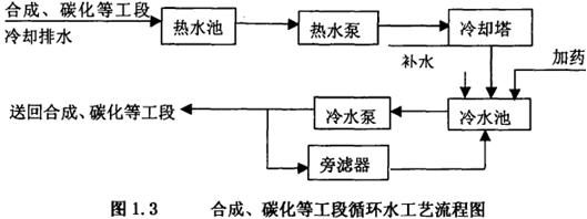 目前國(guó)內(nèi)常采用的合成、碳化循環(huán)水系統(tǒng)主要工藝流程見(jiàn)圖1.3。