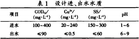根據(jù)實(shí)際調(diào)查和采樣分析,確定設(shè)計(jì)進(jìn)、出水水質(zhì)如表1所示。其中出水水質(zhì)標(biāo)準(zhǔn)為廣東省(水污染物排放限值)(DB44/26-2001)第二時(shí)段一級(jí)排放標(biāo)準(zhǔn)。