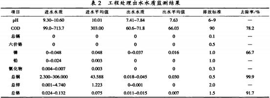 由表2可見,線路板廠廢水經(jīng)過處理后,出水各由表2可見,線路板廠廢水經(jīng)過處理后,出水各項(xiàng)指標(biāo)均達(dá)到廣東省《水污染物排放限值》(DB44/26-2001)第二時(shí)段一級(jí)排放標(biāo)準(zhǔn)。