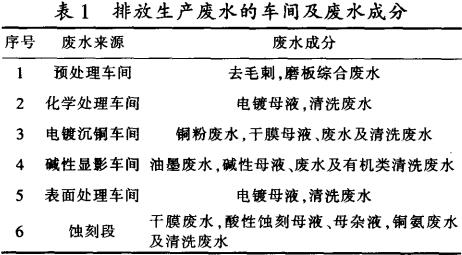 排放生產(chǎn)廢水的車間及廢水成分見(jiàn)表1。