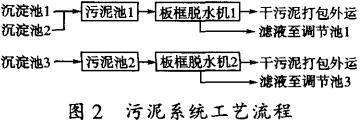 (2)污泥系統(tǒng)工藝流程見(jiàn)圖2。