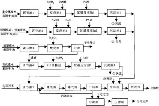 線路板生產(chǎn)過程中產(chǎn)生的廢水,以重金屬銅離子為主,另含有少量的鉛、錫、金、銀、氨、有機(jī)物和絡(luò)合物等。該廢水種類復(fù)雜,pH變化大,處理有一定的難度。根據(jù)該線路板企業(yè)的生產(chǎn)規(guī)模,廢水排放量約為2200m3/d。要求廢水經(jīng)處理后達(dá)到《污水綜合排放標(biāo)準(zhǔn)》(GB8978-1996)一級標(biāo)準(zhǔn),即總銅≤0.5mg/1,pH為6-9,COD≤100mg/L。