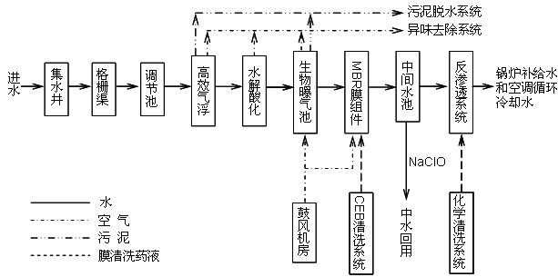 工程采用分質回用的原則。污水經預處理、膜-生物反應器處理后: