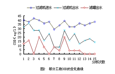 (1) 該系統(tǒng)可將混合液的COD從40mg/L降至12mg/L以下,去除率在70%以上。