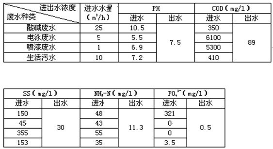 污水來(lái)自涂裝車間的生產(chǎn)廢水和部分生活污水。處理能力1000t/d。