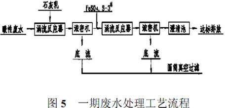 (2)工藝參數(shù):①廢水處理量為310m3/d;②一段中和pH值為11.0左右,沉淀鋅、銅、鎘、汞等;二段中和pH值約10.5,沉淀鉛、砷;③污泥經(jīng)濃密機濃縮,采用圓筒真空過濾。一期廢水處理設(shè)施經(jīng)過幾次改造完善,處理后廢水達標率達85%以上。