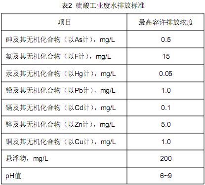 2.2 硫酸工業(yè)廢水排放標準按表 2 規(guī)定執(zhí)行。