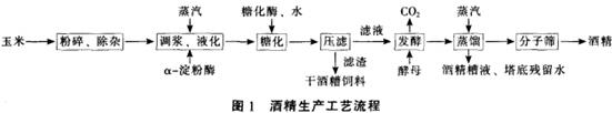 某集團(tuán)40萬(wàn)t/a酒精廠(chǎng)(一期工程為20萬(wàn)t/a)。以玉米為原料,采用清液發(fā)酵法生產(chǎn)酒精,其酒精生產(chǎn)lT藝流程見(jiàn)圖1。