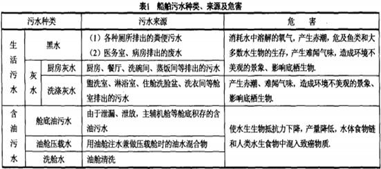 船舶污水總體可分為生活污水和含油污水兩大類。生活污水包括黑水和灰水(廚房灰水、洗滌灰水),含訂了更嚴格的船舶污水排放法規(guī),以降低及消除船舶污油污水包括艙底油污水、油艙壓載水、洗艙水。見表1。