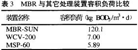 不僅如此,MBR的容積負(fù)荷要高于國(guó)內(nèi)外的類(lèi)似污水處理裝置。這對(duì)于解決船舶上空間有限的實(shí)際問(wèn)題具有十分現(xiàn)實(shí)的意義,見(jiàn)表3。