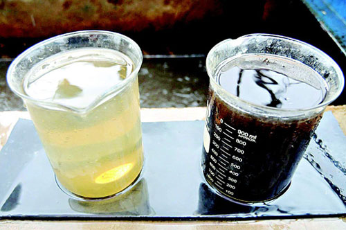 導(dǎo) 讀:兩個燒杯從不同的地方裝滿水,并排放在地面,右邊一杯烏黑渾濁,左邊一杯淺清無雜質(zhì)。對一家主營紙漿生產(chǎn)的企業(yè)來說,產(chǎn)生的污水在排放前能發(fā)生如此截然不同的變化,實現(xiàn)達(dá)標(biāo)排放,是企業(yè)注重環(huán)保,狠抓污水治理工作的結(jié)果。