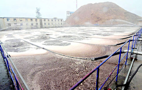 在橫縣冠桂糖業(yè)有限公司紙業(yè)分公司廠區(qū)一角,堆放著高高的蔗渣堆。作為重要的造紙原料,為了讓蔗渣保持新鮮,同時降解其中的糖分,必須向蔗渣堆淋水,否則蔗渣就會發(fā)黑變質(zhì)。而由此產(chǎn)生的蔗渣堆放噴淋廢水,曾一度讓企業(yè)感到頭痛。因為這其中的COD(水污染物化學(xué)需氧量)達(dá)到平均10000mg/L,而一般城市污水中的COD只有200—400mg/L。這些噴淋廢水如果直接排放到江河,會大量消耗水中的氧氣,造成魚蝦死亡以及水體污染。