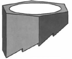 新型護坡磚為正六邊形,中空,內(nèi)部為正六邊形或圓形,底端面與水平面成一夾角α,α大小與所護邊坡的坡度相匹配(如圖2)。這樣,在坡面鋪設(shè)護坡磚時,磚底部與坡面相吻合,上端能夠保持水平,確保磚內(nèi)土體的表面保持水平穩(wěn)定狀態(tài),不易流失,最大程度地保持土壤和水分。
