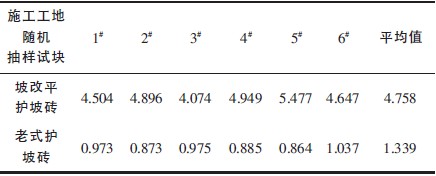 采用壓力機對新型護坡磚和老式護坡磚進行力學(xué)性能上的對比。見表1。