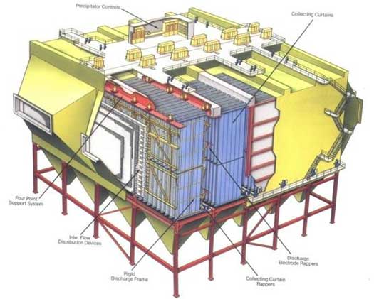 在工業(yè)電除塵器中,最廣泛采用的是臥式的板式電除塵器。它是由本體和供電原源兩部分組成。本體包括除塵器殼體、灰斗、放電極、集塵極、氣流分布裝置、振打清灰裝置、絕緣子及保溫箱等等。