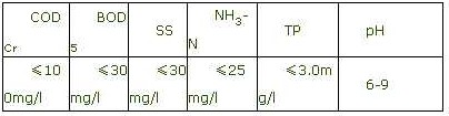 出水執(zhí)行城鎮(zhèn)污水處理廠污染物排放標(biāo)準(zhǔn)(GB18918-2002)中二級標(biāo)準(zhǔn)。具體出水指標(biāo)為: