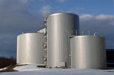 厭氧處理產(chǎn)生的沼氣可用來為整個廢水處理廠供熱。因為該廠位于瑞典很靠北的地方,該廠建于室內(nèi)。