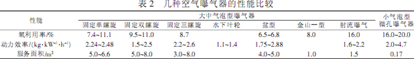 純氧曝氣所用的曝氣器與空氣曝氣器是可以通用的,只是因氣量不同需做適當調(diào)整。國內(nèi)已能生產(chǎn)多種空氣曝氣器,效果良好的空氣曝氣器,從原理上講對于純氧曝氣也應效果顯著。幾種空氣曝氣器的性能比較見下表。