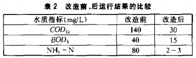 上例中純氧曝氣系統(tǒng)的硬件投資費(fèi)用約為3萬馬克,而采用供氧能力相當(dāng)?shù)谋砥卦O(shè)備,則投資高達(dá)20萬馬克;應(yīng)用BIOX工藝僅改造投資就比傳統(tǒng)工藝(包括擴(kuò)大曝氣池容積所需的土建費(fèi)用)節(jié)約800萬馬克,改造后污水處理廠的年運(yùn)行費(fèi)用約為l2萬馬克,改造前、后運(yùn)行結(jié)果的比較見表2。